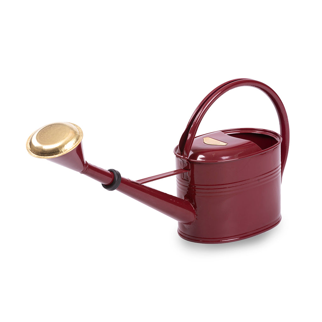 Mit dieser formschönen ovalen Gießkanne macht das Blumengießen gleich viel mehr Spaß! Mit ihrem Fassungsvermögen von 4 Litern Wasser ist die Gießkanne optimal für alle Gartenfreunde, die eine mittelgroße Gießkanne bevorzugen. Dank der abnehmbaren Brause kannst Du punktgenau gießen. Die Gießkanne ist feuerverzinkt und pulverbeschichtet, was der Oberfläche seine typische, leicht unebene Struktur verleiht. Der glänzende Goldton des Messingteils der Brause verändert sich aufgrund der Luftfeuchtigkeit und dem Kontakt mit Wasser auf ganz natürliche Weise und bekommt mit der Zeit eine warme Patina, was der Brause einen rustikalen Charme verleiht.